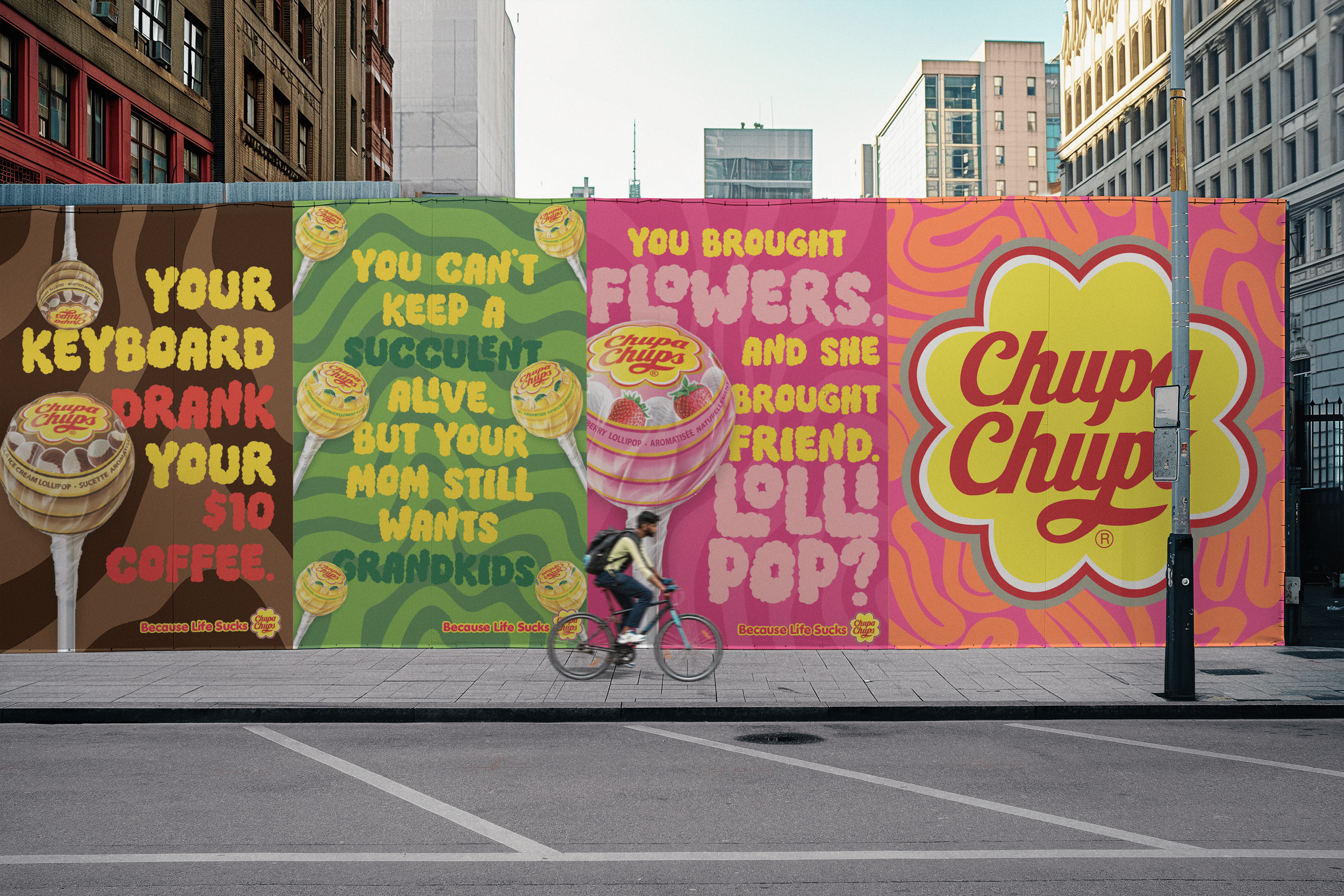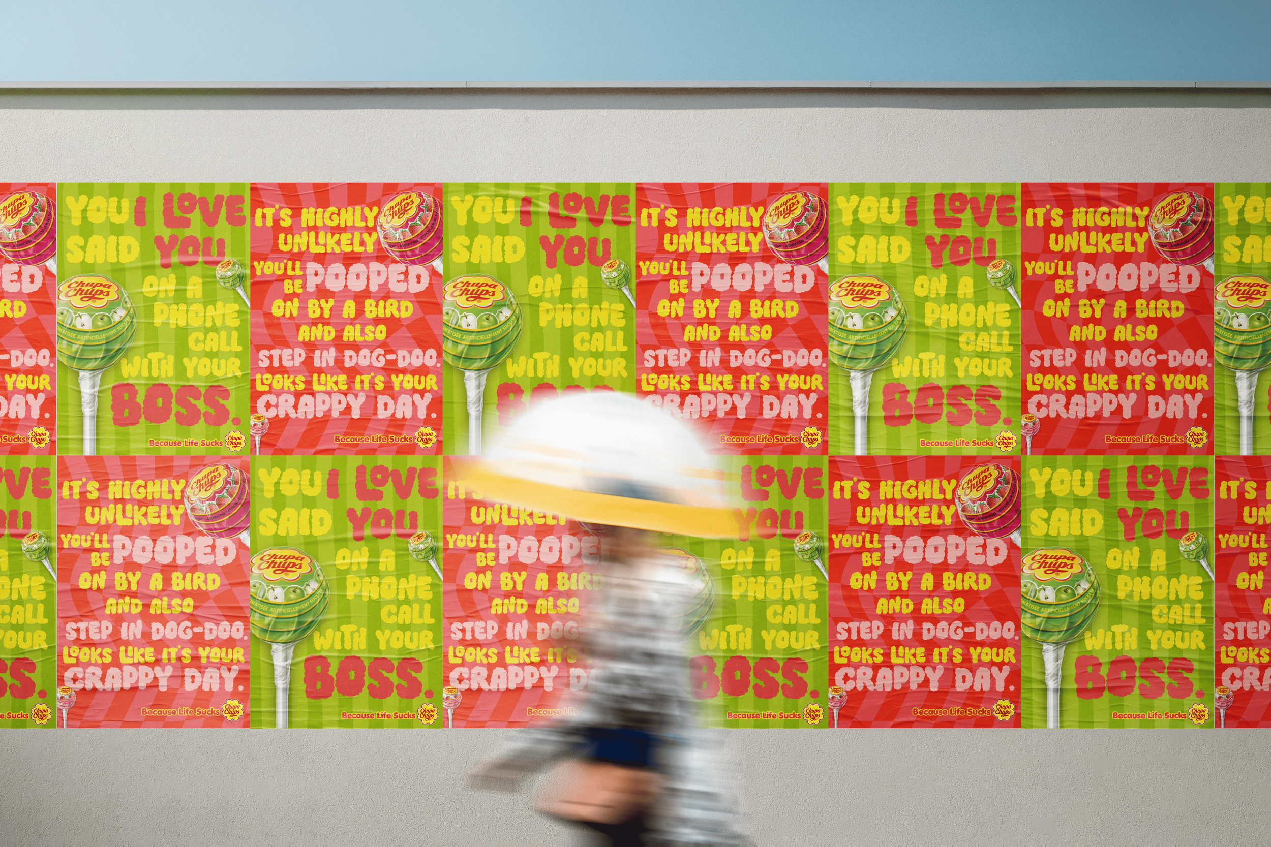Our daily lives are a series of sucker punches, and while we can’t keep them from landing, we can soften the blows by keeping sweetness in hand. Have a Chupa Chups, because life sucks.