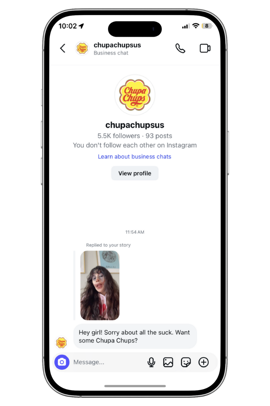 Finally, when people posted about the suck in their lives, we hit their DMs with a code for a free bag of lollipops.