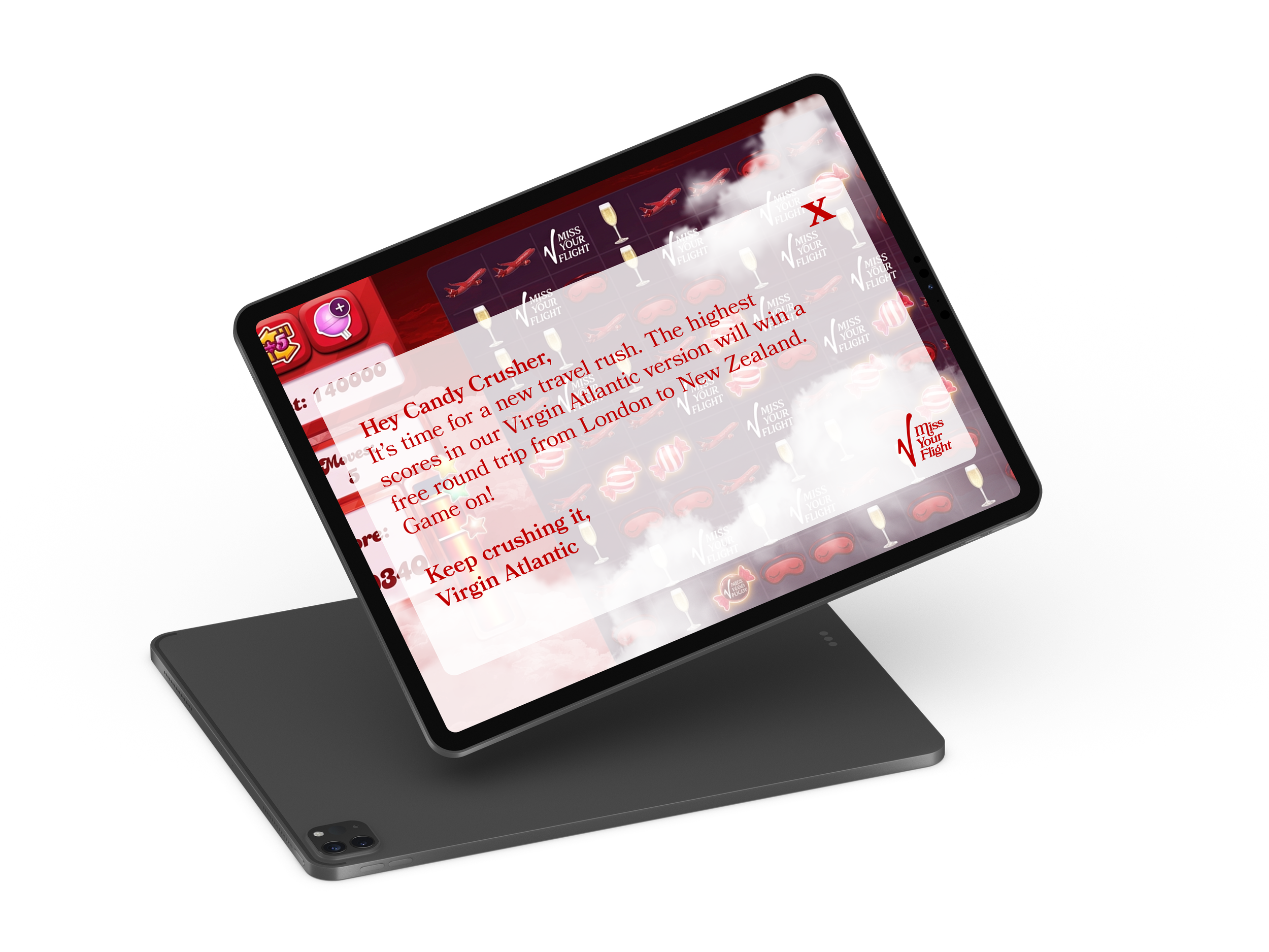 On airplane mode’s favorite mobile game, Candy Crush, we created a Virgin-themed gaming ad where the highest scores received a free trip.