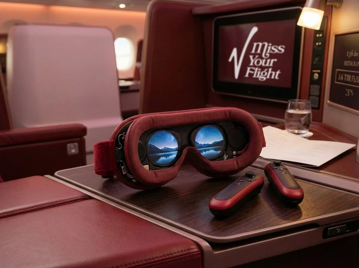 For extra in-flight delight, we collaborated with Meta to bring Meta Quest VR eye masks to every seat, complete with Virgin-themed games and passenger chat rooms.